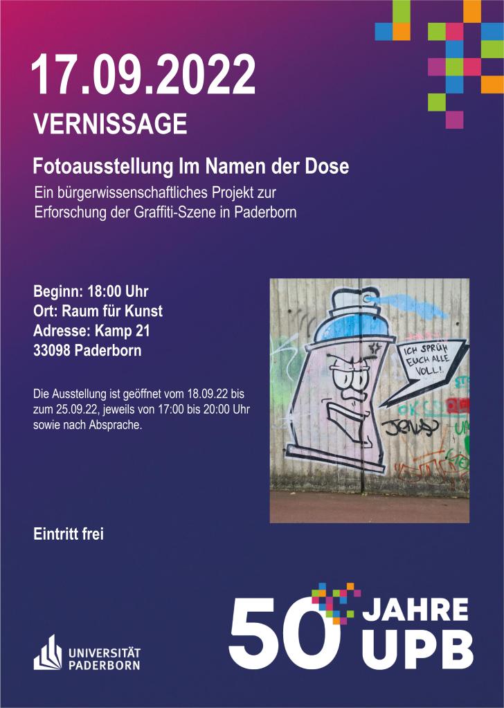 Bei der Vernissage legt der Berliner DJ Jens Strüver auf, bei der Finissage gibt es Live-Musik mit den Paderborner Musikern Florian Arnold, Oliver Kasprzok, Calvin Schwizzle und Andi Seifert.