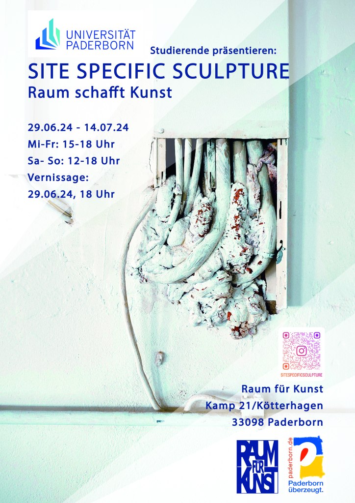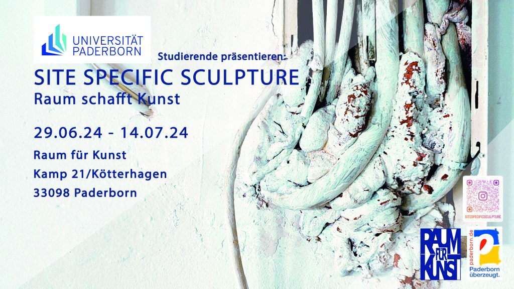 In einem kunstpraktischen Seminar unter der Leitung der Dozentin Svenja Langer haben 14 Studierende der Universität Paderborn ortsspezifische Skulpturen in bzw. zum Ort des ‚Raum für Kunst‘ in Paderborn konzipiert, welche vom 29. Juni bis zum 14. Juli in der Ausstellungshalle des Raum für Kunst präsentiert werden.
